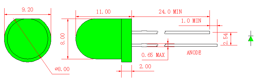 2. Допуск составляет ±0,25 мм (0,01 дюйма), если не указано иное; Допуск на силу света составляет ± 10%;