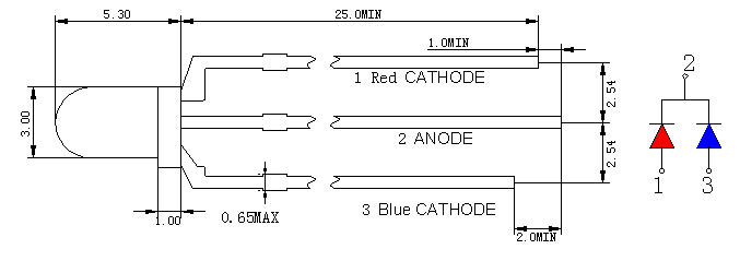 Круглая светодиодная лампа красного/синего цвета с общим катодом 3 мм