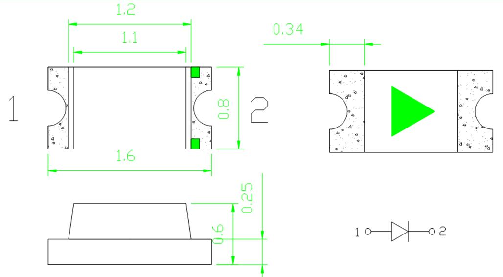 Этот зеленый SMD светодиоды 0603 изготовлены из АлГаИнП на сапфире
