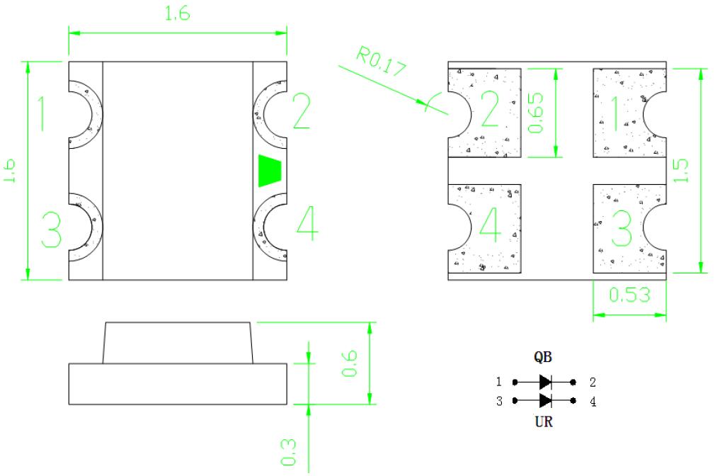 Размеры упаковки DUAL COLOR чип светодиод 0606