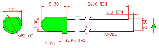 Круглая светодиодная лампа чистого зеленого цвета 3 мм (LL30PG1D60-2000)