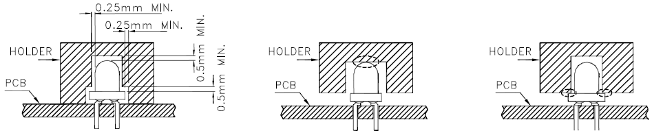 6. Во время пайки крышки и держатели компонентов должны оставлять зазор, чтобы избежать повреждения светодиода во время пайки.