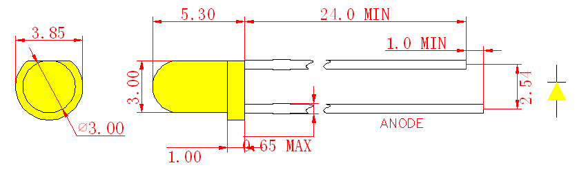 2. Допуск составляет ±0,25 мм (0,01 дюйма), если не указано иное; Допуск на силу света составляет ± 10%;
