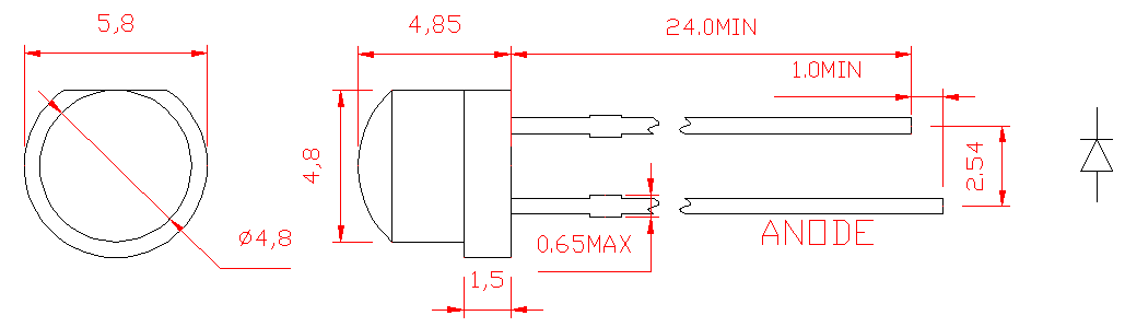 2. Допуск составляет ±0,25 мм (0,01 дюйма), если не указано иное; Допуск на силу света составляет ± 10%;