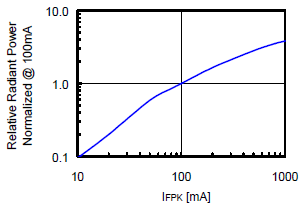 ИНЖИР. 3 Относительное излучение против. Прямой ток ИНЖИР. 4 относительных радианта против. Прямой пиковый ток