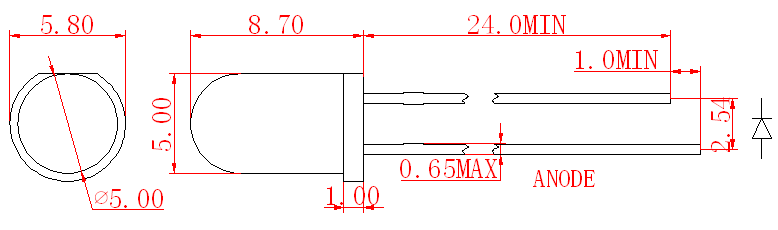 2. Допуск составляет ±0,25 мм (0,01 дюйма), если не указано иное; Допуск на силу света составляет ± 10%;