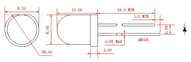 2. Допуск составляет ±0,25 мм (0,01 дюйма), если не указано иное; Допуск на силу света составляет ± 10%;