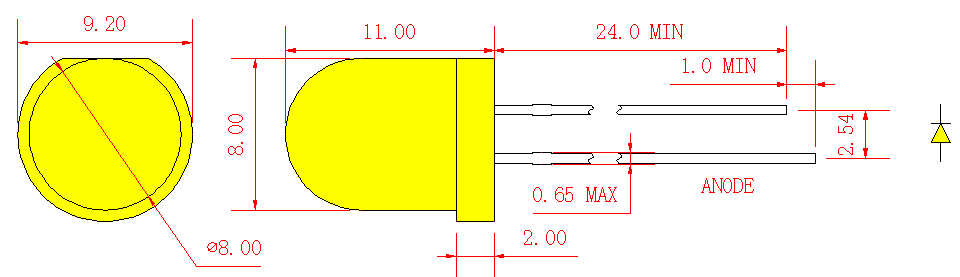 Желтая круглая светодиодная лампа 8 мм (LL80UY3D30-300)